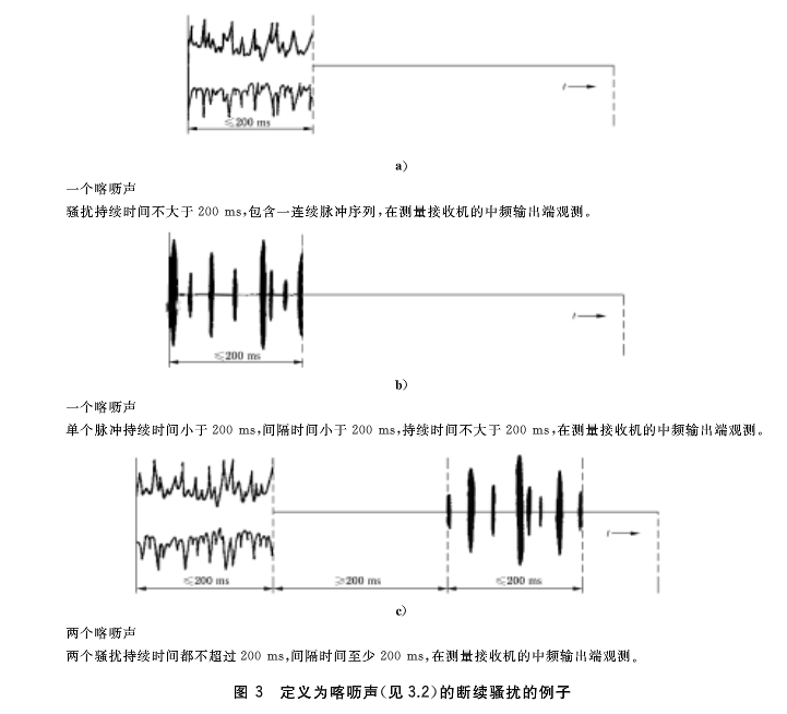 當(dāng)上述情況測(cè)試不合格時(shí),我們?cè)偃タ紤]是否所有的喀嚦聲持續(xù)時(shí)間和分布符合喀嚦聲的定義(GB4343.1見3.2),因?yàn)橹挥羞@種情況下才對(duì)斷續(xù)騷擾使用放寬的限值。