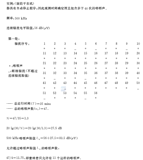 當(dāng)觀測(cè)到斷續(xù)騷擾的參數(shù)不符合喀嚦聲的定義,應(yīng)再檢查該斷續(xù)騷擾是否屬于GB4343.1-4.2.3和附錄A中規(guī)定的喀嚦聲定義的例外情況。